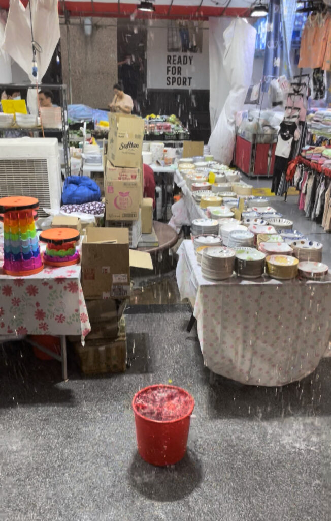 Tutira mentünk – a “reggeliző” helyre. Nagyban megkezdtük a lakomázgatást (kacsacombok, thai csirkék, gombóckák) amikor kiderült, hogy mégiscsak lóaszt se értünk a meterologiához – olyan ömlő eső csapott le ránk, hogy azt az egyszeri monszunhoz szokott helyi erők is csak tátott szájjal pislogták. A lehulló csapadék útból való eltávolításának legjobb formája még itt az űrtechnológiával felszerelt keleten is még mindig természetesen a VÖDÖR. 🤣🤣