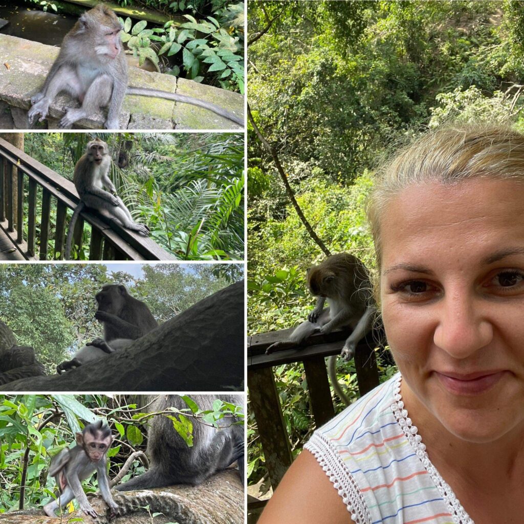 Utolsó állomás - itt már jártunk Pufival: a Monkey Forest - szó szerint Majomerdő, gyakorlatilag egy majompark. Szabadon jönnek-mennek-másznak-üvöltenek-verekednek-sivítoznak a kisebb nagyobb majmócák. Időnként közepesen agresszívek.