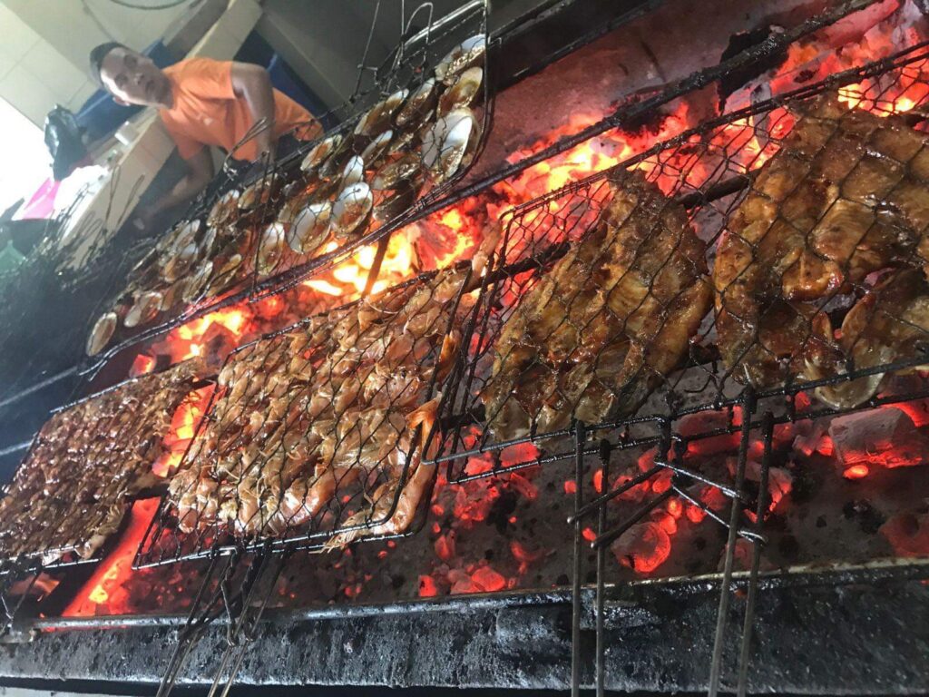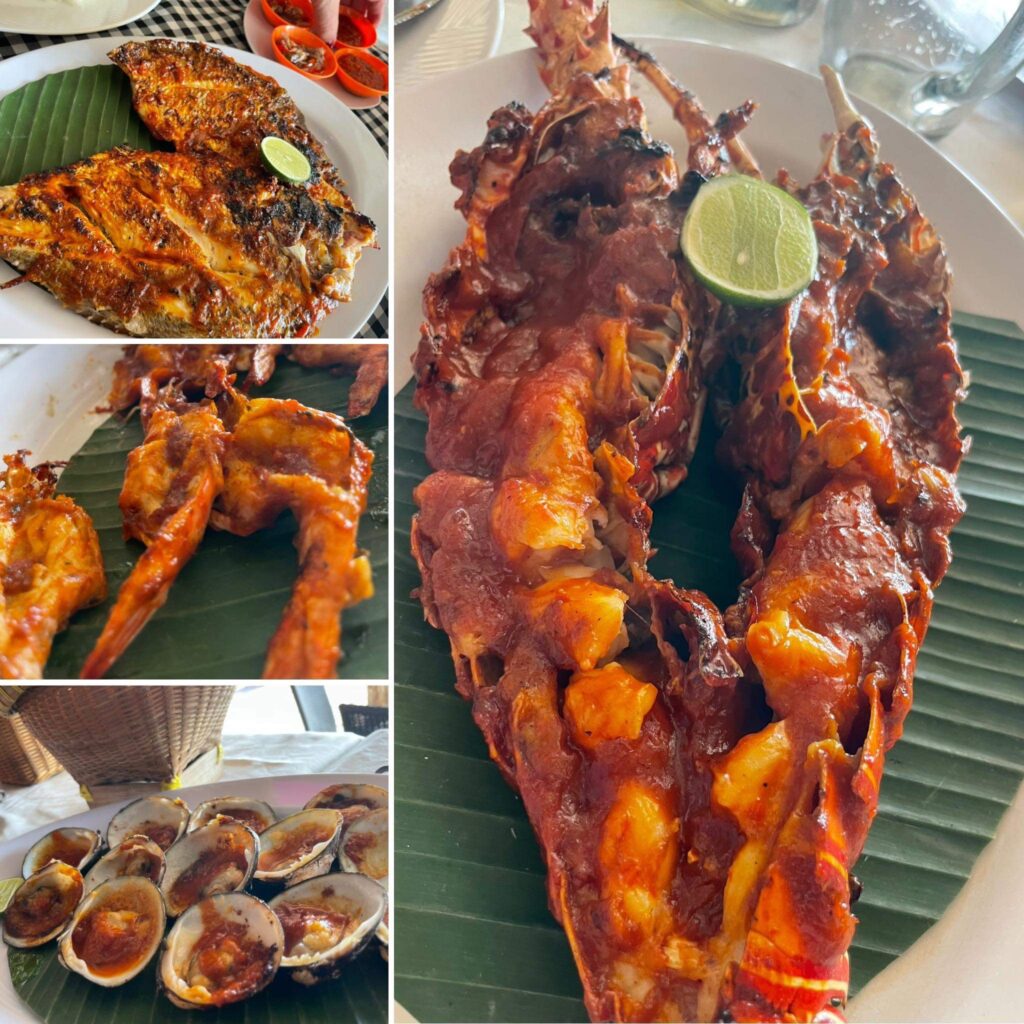 Ami a tuti ebben a partszakaszban, hogy 25-30 vendéglő van egymás mellett - mindegyik ugyanarra a közepesen sem komplikált üzleti modellre épít: a frissen kifogott mindenféle tengeri kis és nagy állatok azonnali megsütése tűzön. Az étlapról lehet mindenből választani, mi rámentünk egy családi csomagra. Hát pofoz minket az élet az biztos!!!! Rák, kagyló, hal, tintahal és homár is sült... Jéééézusom de finom volt!!!